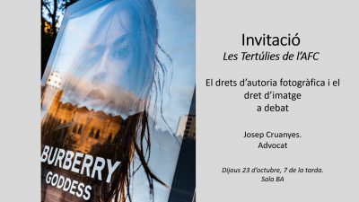 Xerrada de Josep Cruanyes advocat .Inclosa dins el cicle de Tertúlies fotogràfiques que tenen lloc a l’AFC mensualment.