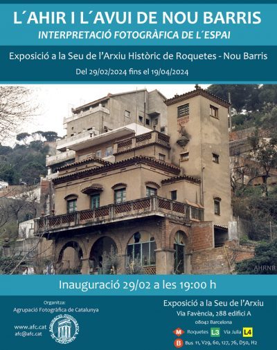 Proponemos un recorrido a través de 18 imágenes antiguas del Ayer de Nou Barris, procedentes del fondo del Archivo Histórico de Roquetes Nou Barris. La visión del Avui de Nou Barris, que ha sufrido una transformación muy evidente, está formada por 36 fotos impresas y una selección en formato digital de la participación de los socios y socias actuales de nuestra Entidad.