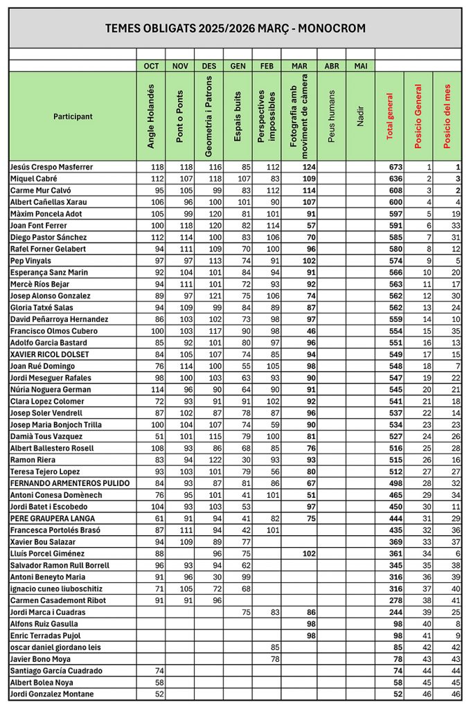 Com ja sabeu, el tema va canviant cada mes i el tema d’aquest mes de MARÇ de 2026 ha estat: “Fotografia amb moviment“.