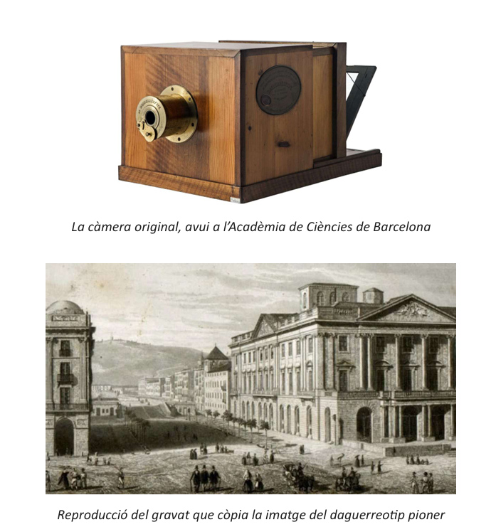 Aquella primera fotografia fou tot un esdeveniment. Tan sols tres mesos abans Louis Daguerre havia presentat un invent llavors revolucionari a l’Acadèmia de Ciències de França. El daguerreotip, desenvolupat per ell mateix i del qual en va prendre el nom, era l’ invent donat a conèixer. Daguerre va presentar al món un sistema que fixava la imatge d’una forma més ràpida i més nítida que la de Nièpce, (heliografia). Aquesta tècnica consistia en una planxa de coure platejada en la qual es fixaven petits nòduls de iodur de plata segons l’afectació que la llum donava a cada part de la planxa. El revelatge es feia emprant mercuri vaporitzat, fixant les ombres i les llums a la superfície platejada de la placa de coure, tot creant-se d’ aquesta manera la imatge fotogràfica. Es va donar la circumstància que, en aquell moment eren a París Enric Monlau, corresponsal de l’Acadèmia de Ciències i Arts de Barcelona, i el gravador Ramon Alabern. Impressionats per l’invent, es va adquirir una càmera Daguerre i tots dos la varen portar a Barcelona (1).